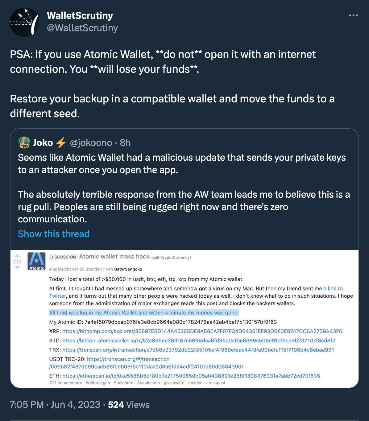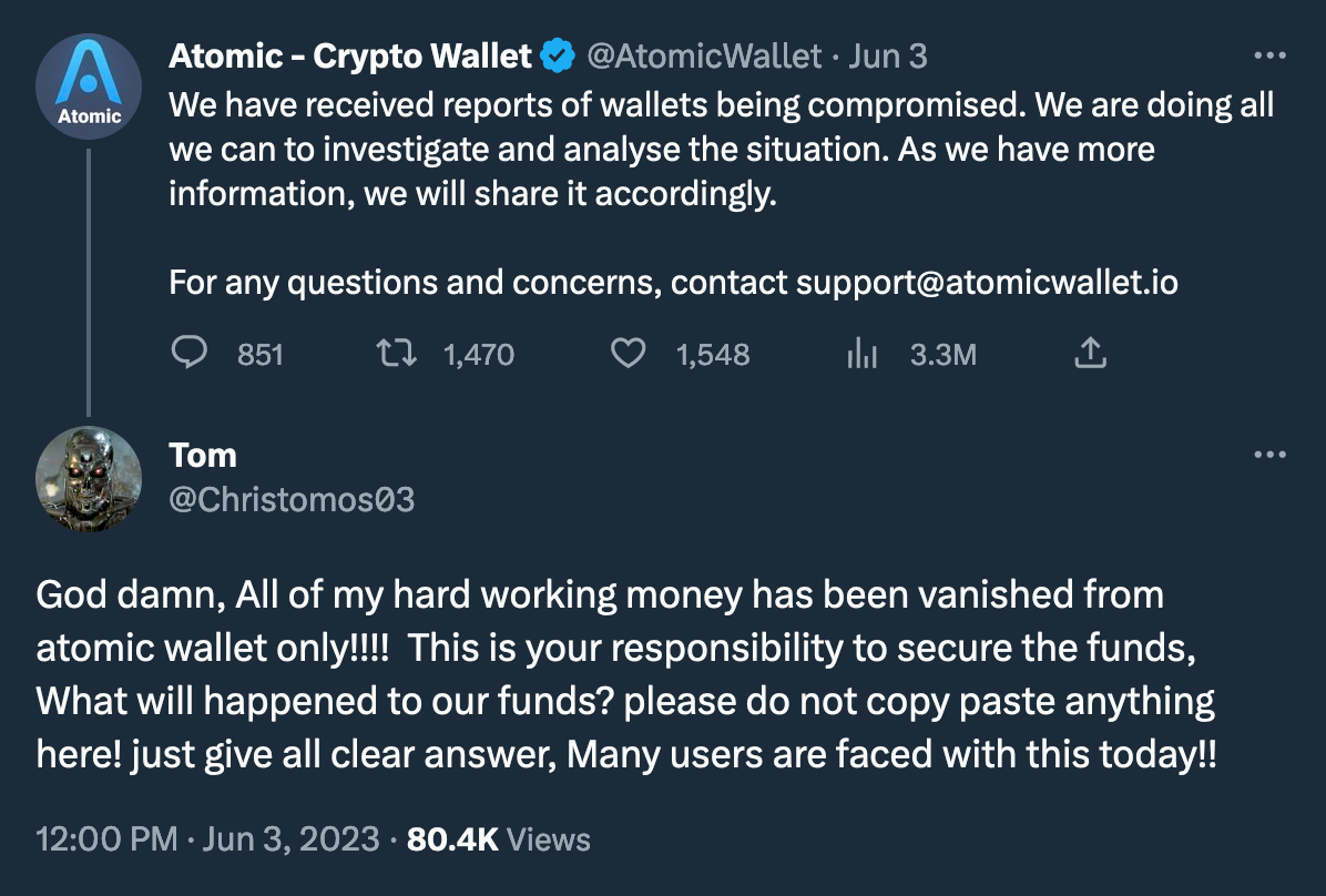 Another week, another security incident happens here in the cryptocurrency industry. Last week that was Jimbos liquidity protocol; now, it's an @AtomicWallet that was exploited on Saturday, with users reporting complete losses of their crypto portfolios. Total losses have already exceeded $35 million and continue to rise.