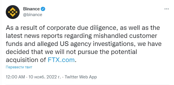 However, on November 9, Binance changed its mind about buying the world's third-largest crypto exchange FTX. The company said it made the decision following a “corporate due diligence.” Binance's refusal to buy FTX intensified deposit runoff. Bitcoin fell to a two-year low.