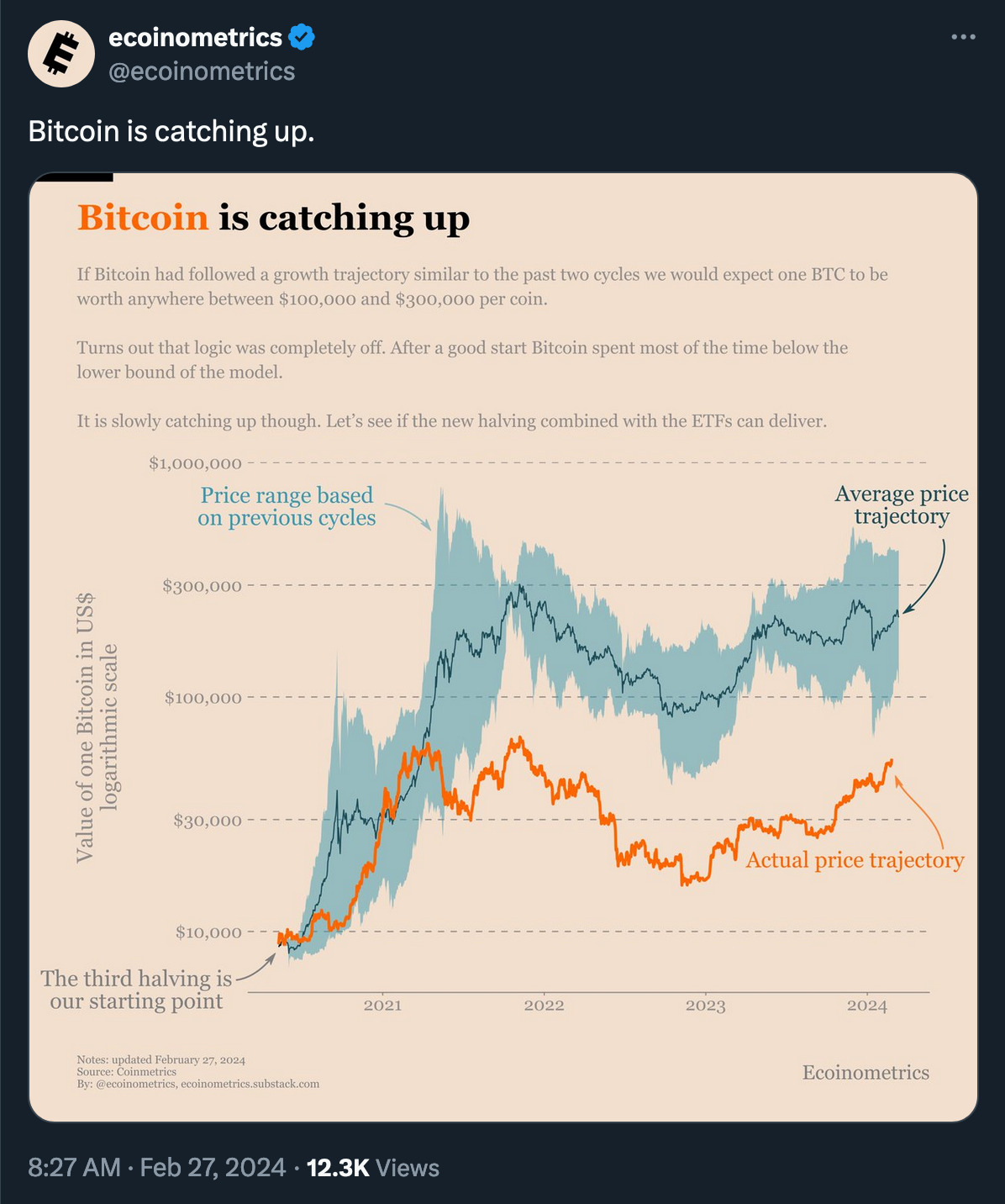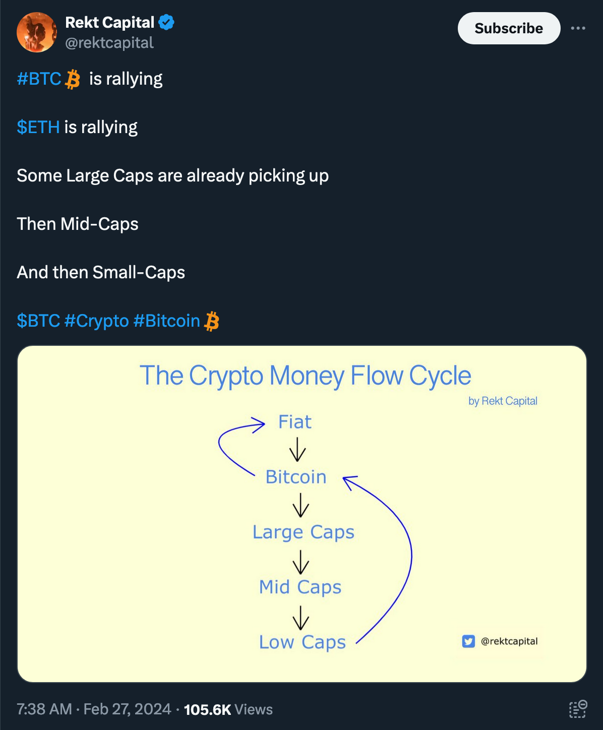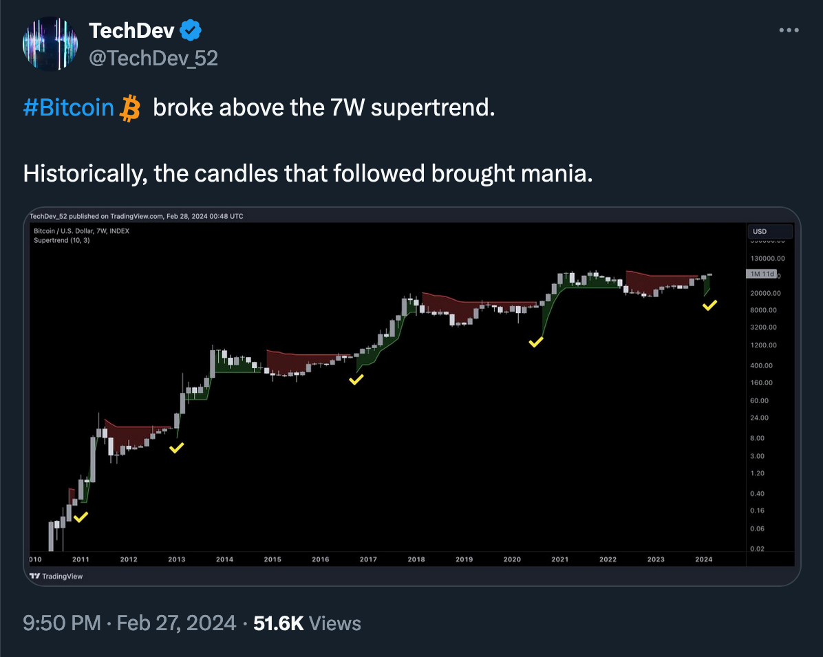 “Right now, ~49 days remain until the April 2024 Halving. … Short-term traders and speculators ‘Buy The Hype’ several weeks before the Halving in anticipation of making a profit from this hype-fuelled rally. Then these speculators ‘Sell The News’ to realise that profit, contributing to a Pre-Halving retrace which occurs only a handful of weeks before the Halving event itself.” (@rektcapital)